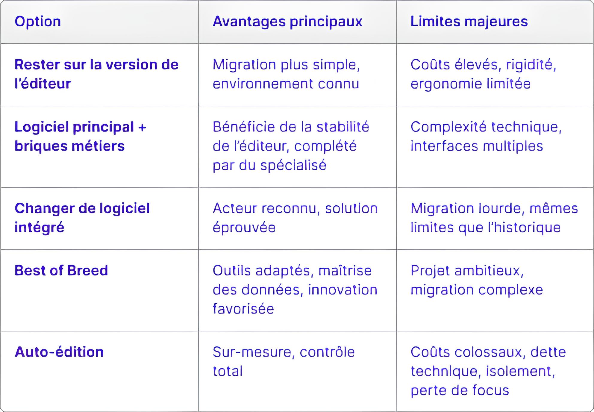 Changer de fournisseur est une autre alternative. C’est une décision stratégique lourde, car elle implique une migration complexe, souvent longue et coûteuse. L’intérêt réside dans la possibilité de s’appuyer sur un acteur reconnu du marché, avec une solution déjà éprouvée par d’autres bailleurs. Mais au final, on reste confronté aux mêmes limites que les solutions historiques : rigidité, coûts élevés, et faible ouverture vers l’extérieur.