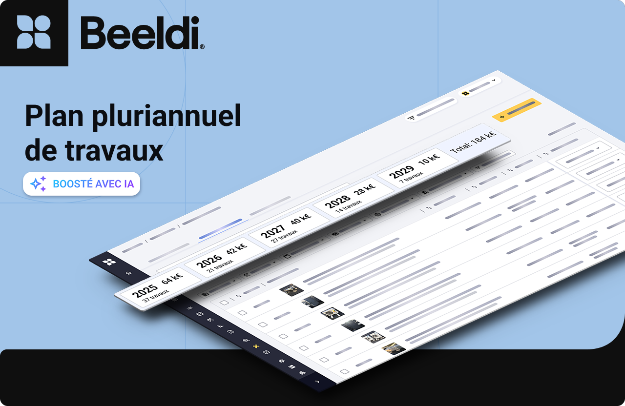 Le PPT boosté par l'IA de Beeldi automatise précisément ces étapes : identification des équipements, scoring des priorités, génération de scénarios budgétaires, actualisation en continu. Le résultat : un PPT construit 4 fois plus vite, exploitable immédiatement.